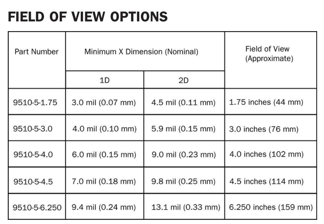 采用5百萬(wàn)像素的高分辨率相機(jī),可以實(shí)現(xiàn)條碼的高分辨率檢測(cè),可以在兩千分之一英寸(.002"/.05 mm)的條碼高度上進(jìn)行讀取和分析,遠(yuǎn)超ISO所要求的十次掃描最低平均值。