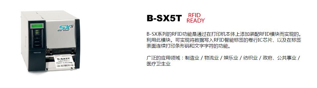 B-SX系列的RFID功能是通過在打印機(jī)本體上添加裝配RFID模塊而實(shí)現(xiàn)的,利用此模塊??蓪?shí)現(xiàn)將數(shù)據(jù)寫入RFID智能標(biāo)簽的卷行IC芯片、以及在標(biāo)簽表面連續(xù)打印條形碼和文字字符的功能。