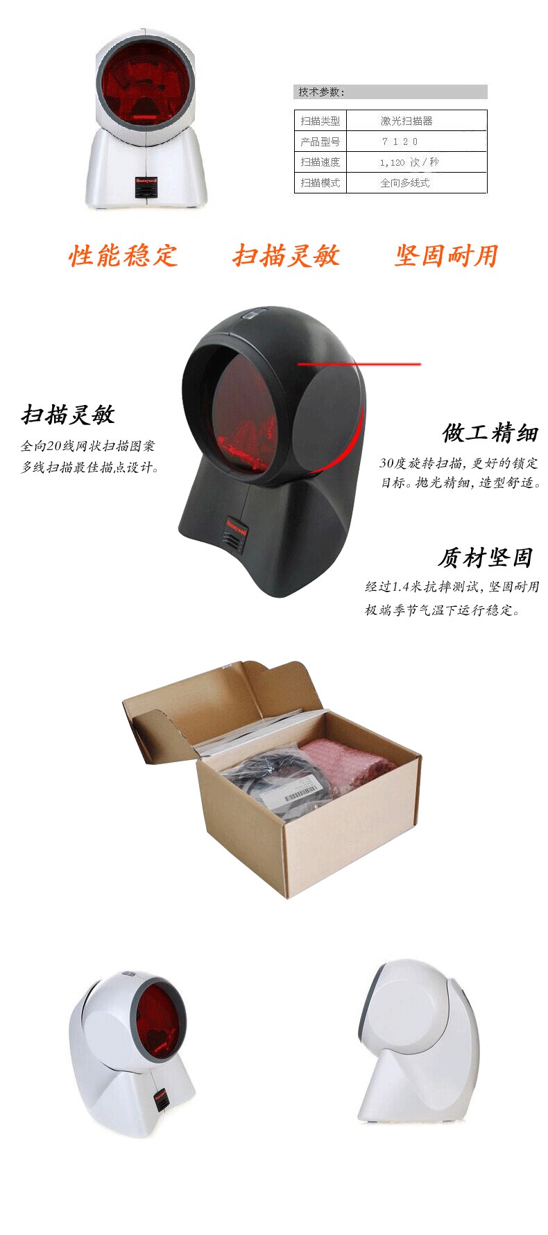 ◆ 抗震性: MS7120可承受1.2 m (4.0') 的空中摔落