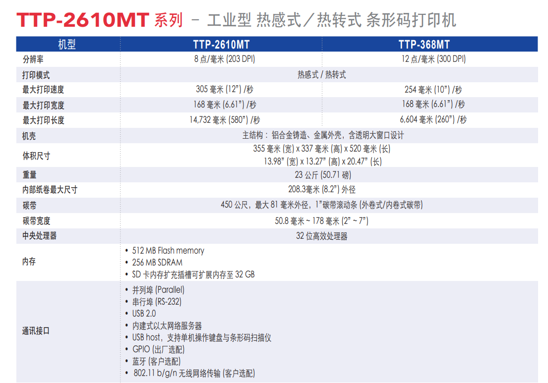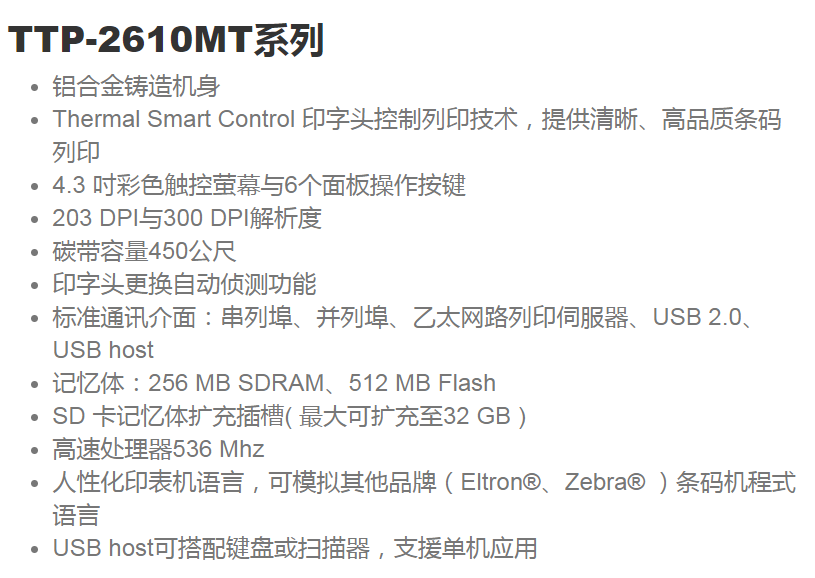TSC TTP-2610MT系列 打印機