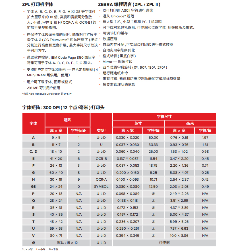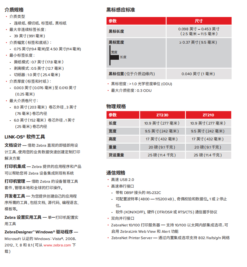 以下規(guī)格僅供參考,并且基于使用Zebraa? 原廠耗材對(duì) ZT200? 工業(yè)系列打印機(jī)所進(jìn)行的測(cè)試。測(cè)試的結(jié)果會(huì)因?qū)嶋H的應(yīng)用設(shè)置或使用非建議的Zebra品牌耗材而存在差異。Zebra始終建議通過測(cè)試來檢驗(yàn)應(yīng)用。
